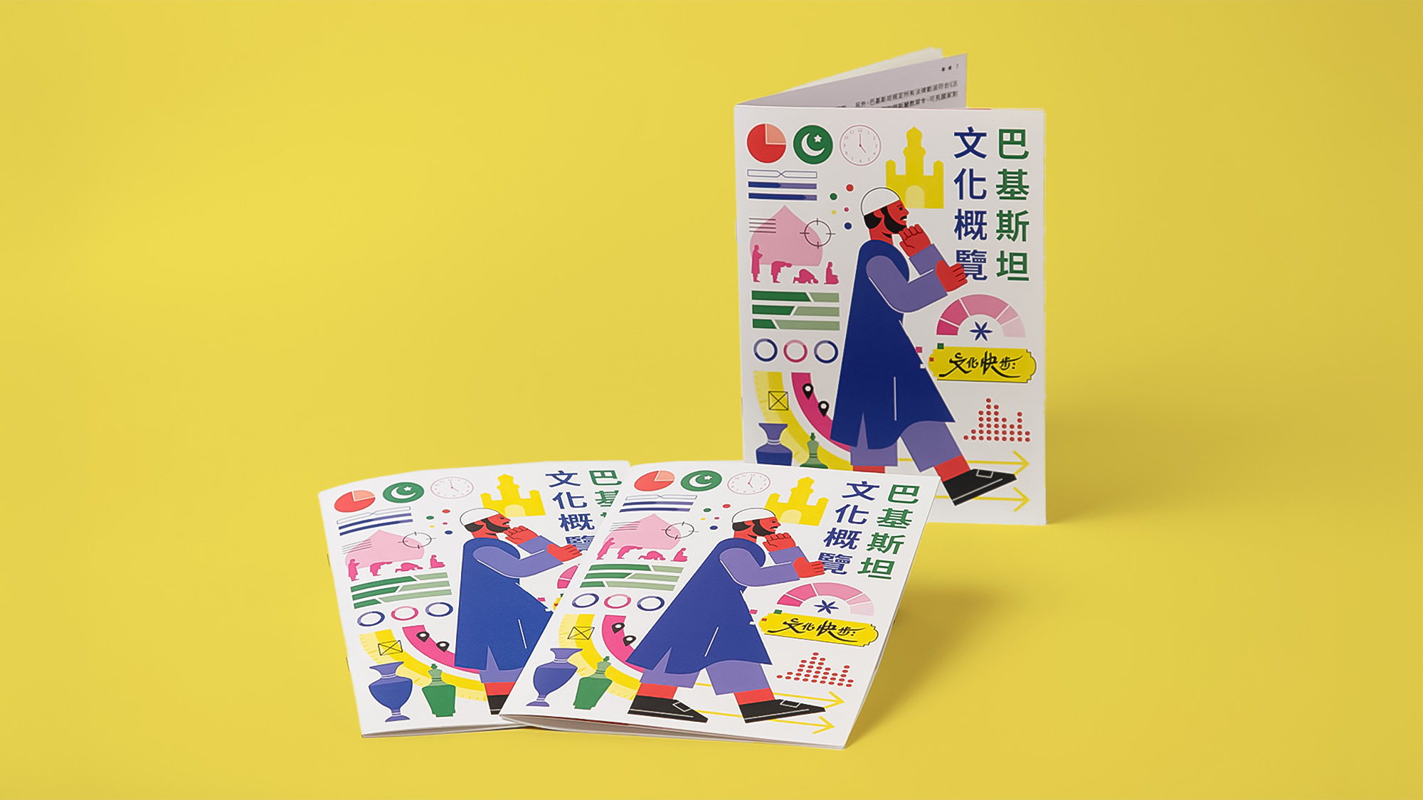 《巴基斯坦文化概覽》小冊子採用資訊圖表(Infographic)形式呈現「文化快步」活動的重要文化知識,涵蓋衣著特色、宗教習俗與飲食文化等主題。小冊子的設計延續了「文化快步」的視覺識別系統,打造一致與專業的視覺體驗。